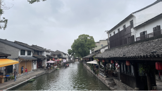 下午,一行来到安昌古镇。烟雨朦胧,流淌千年的河道,老街依河而建。一岸是民居,满是岁月痕迹;一岸是商市,喧闹繁华。澄碧的河面上几艘乌篷船载着游客来来往往。安昌古镇有着符合江南水乡的所有印象,随处可见酱鸭腊肠和琳琅满目的特色小吃又为古镇增添不少的烟火气,大家沿岸欣赏古镇风貌,享受这美好时刻。